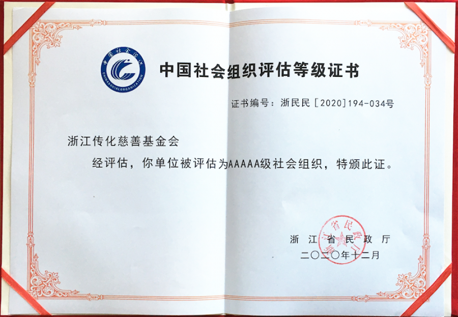 近日,浙江省民政廳公布了2020年度全省性社會組織評估結果,首次參評的傳化慈善基金會獲評5A級社會組織”稱號這是社會組織評估的最高等級,也成為浙江省創辦時間最短即獲得5A等級的社會組織。